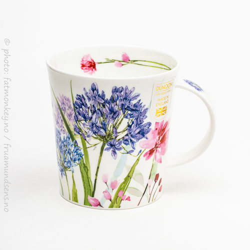 Som alle Dunoon-kopper så har den en god og romslig hank, som gjør det mulig å holde godt i den uten å brenne fingrene på selve koppen. Og som alle Dunoon-kopper er den laget i “fine bone china” – altså benporselen – i England.
