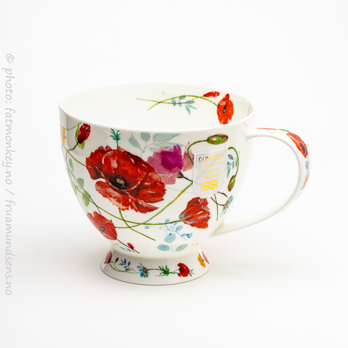Som alle Dunoon-kopper så har den en god og romslig hank, som gjør det mulig å holde godt i den uten å brenne fingrene på selve koppen. Og som alle Dunoon-kopper er den laget i “fine bone china” – altså benporselen – i England.