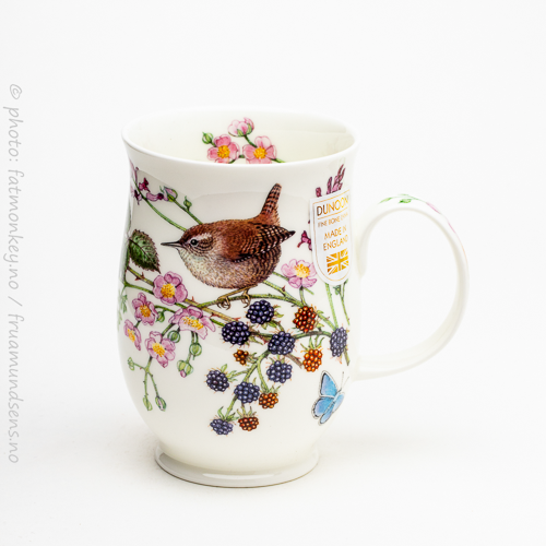 Som alle Dunoon-kopper så har den en god og romslig hank, som gjør det mulig å holde godt i den uten å brenne fingrene på selve koppen. Og som alle Dunoon-kopper er den laget i “fine bone china” – altså benporselen – i England.